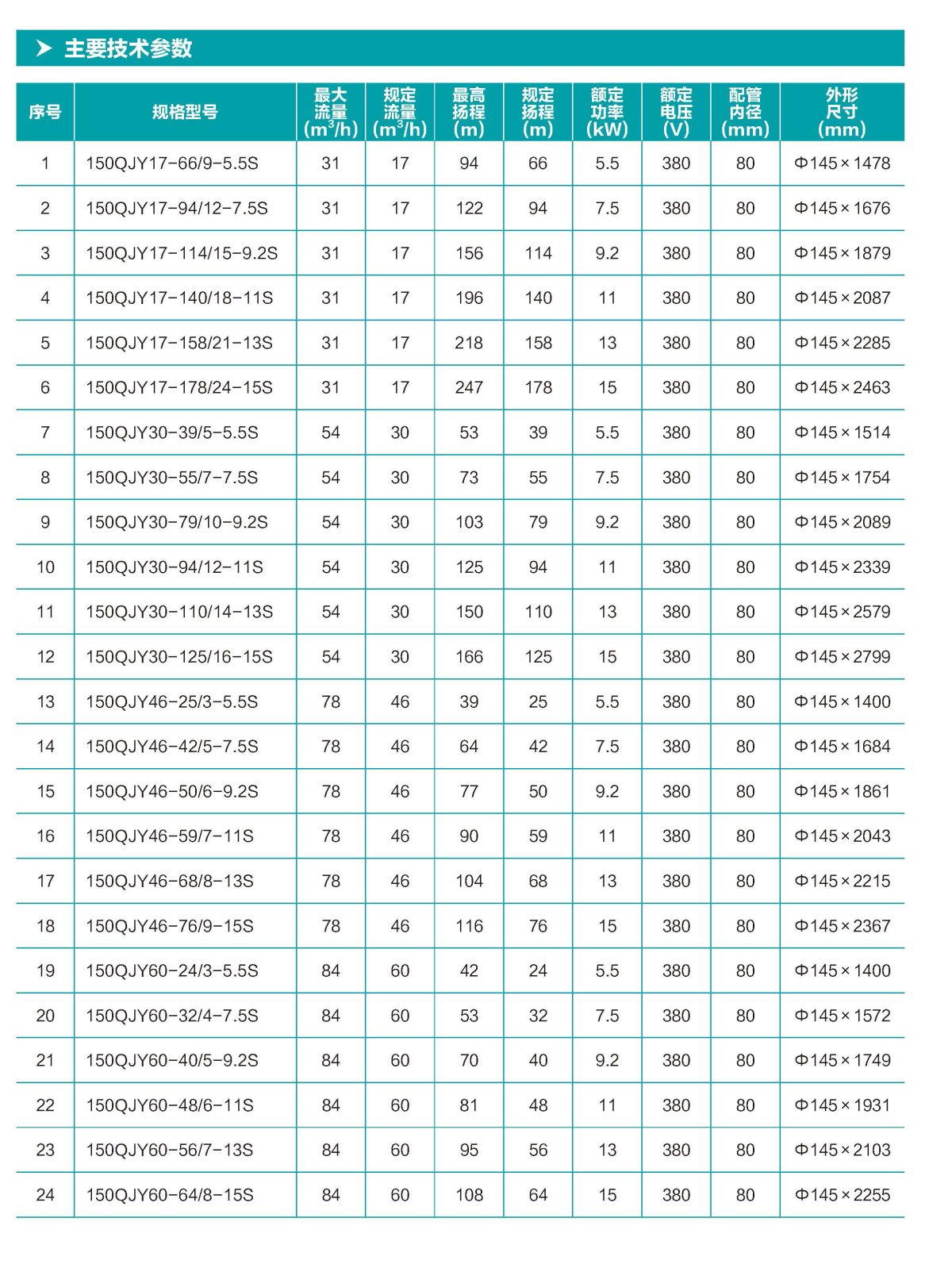 150QJY 井用多級潛水電泵,采用榮膺“品牌中國大獎·最佳科技獎”的超 強“巨能芯”核心技術(shù),品質(zhì)卓越值得信賴。整體浮動式葉輪結(jié)構(gòu),耐磨更抗砂; 采用意大利進口機械密封作動密封,固定止口密封處采用雙重“O”型耐油 橡膠密封圈作靜密封,密封更可靠。